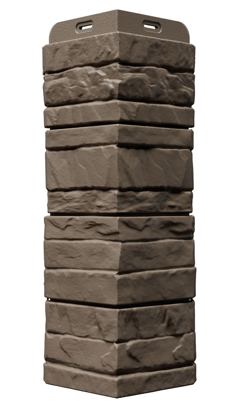 Отделка цокольных панелей АЛТАЙ на внешних углах здания.