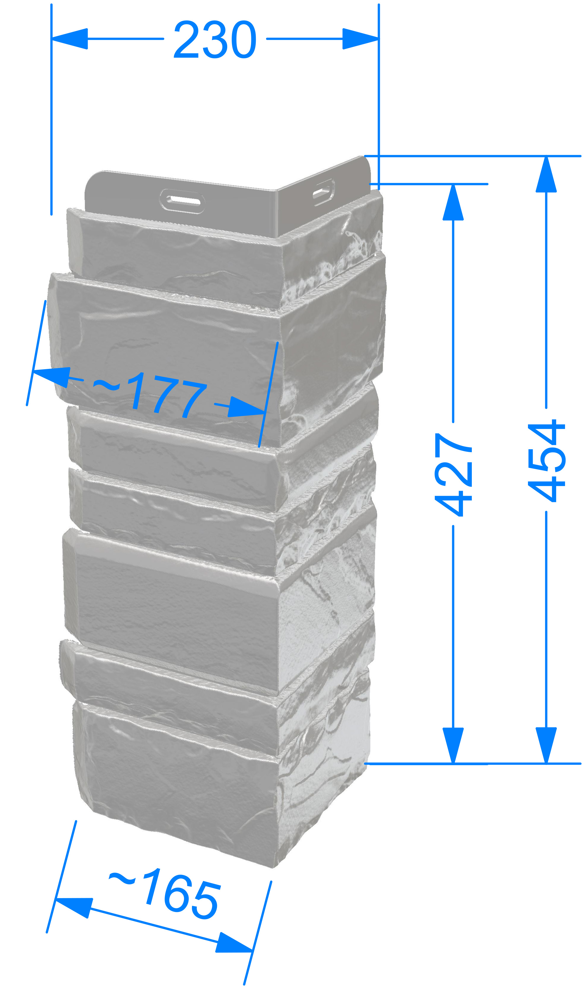 Дизайн внешних углов в цвете «навахо» идеально сбалансирован — имитация песчаника разных размеров идеально дополняет фасадные панели STERN, а сколотая фаска делает рельеф более выразительным, особенно в светлом исполнении.